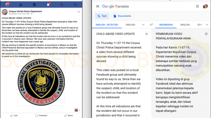 (2) http://bit.ly/34Y8zBg, Corpus Christi PD (twitter.com/CorpusChristiPD, akun terverifikasi):”Pembaruan Video Penyiksaan Anak https://t.co/zgx9jPMdit?amp=1″.