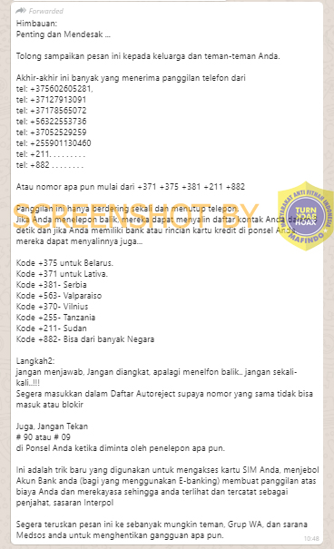 jangan menjawab, Jangan diangkat, apalagi menelfon balik.. jangan sekali-kali..!!!