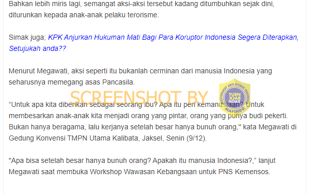 Jika dibaca, isi dari artikel blogspot tersebut merupakan isi pidato Megawati saat membuka Workshop Wawasan Kebangsaan untuk para Pegawai Negeri Sipil di Kementerian Sosial pada 9 Desember 2019. Adapun sebagian besar isi dari artikel tersebut adalah menyinggung maraknya aksi-aksi teroris dengan target kelompok yang berbeda agama.