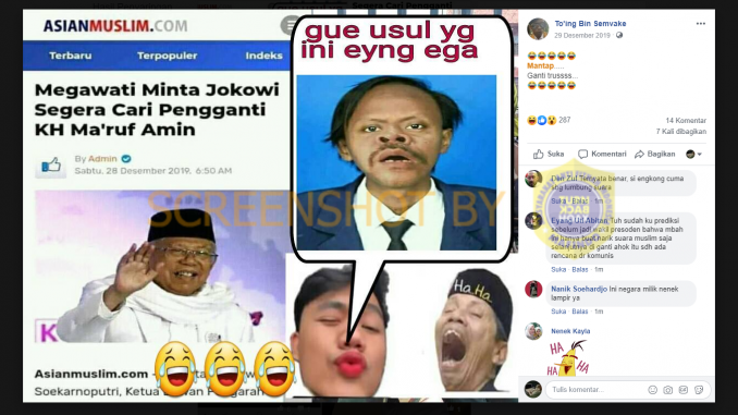 Di kolom komentar, salah satu warganet menuliskan komentar : “Tuh sudah ku prediksi sebelum jadi wakil presoden bahwa mbah ini hanya buat narik suara muslim saja selanjutnya di ganti ahok itu sdh ada rencana dr komunis”