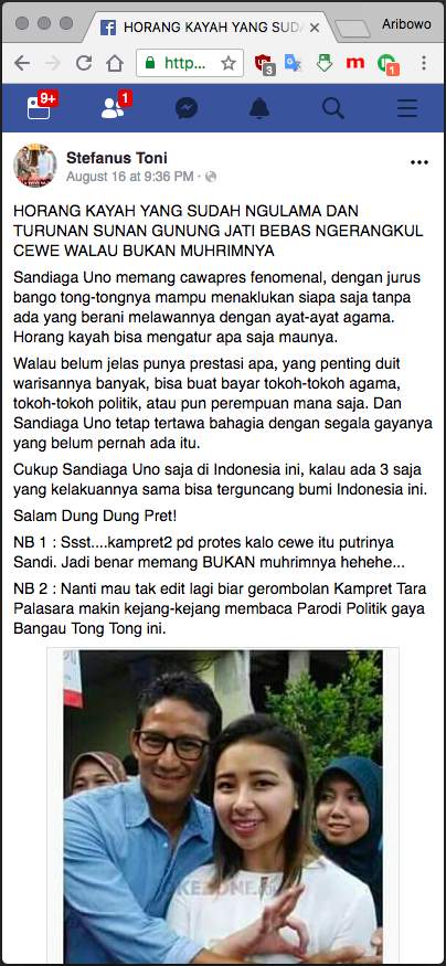 NB 1 : Ssst....kampret2 pd protes kalo cewe itu putrinya Sandi. Jadi benar memang BUKAN muhrimnya hehehe...
