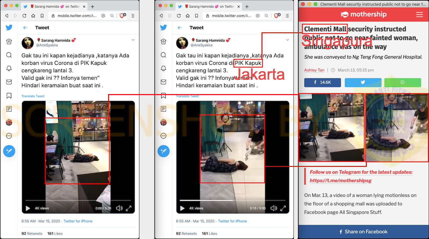Lokasi kejadian adalah di The Clementi Mall (Singapura), BUKAN di PIK (Pantai Indah Kapuk, Jakarta).