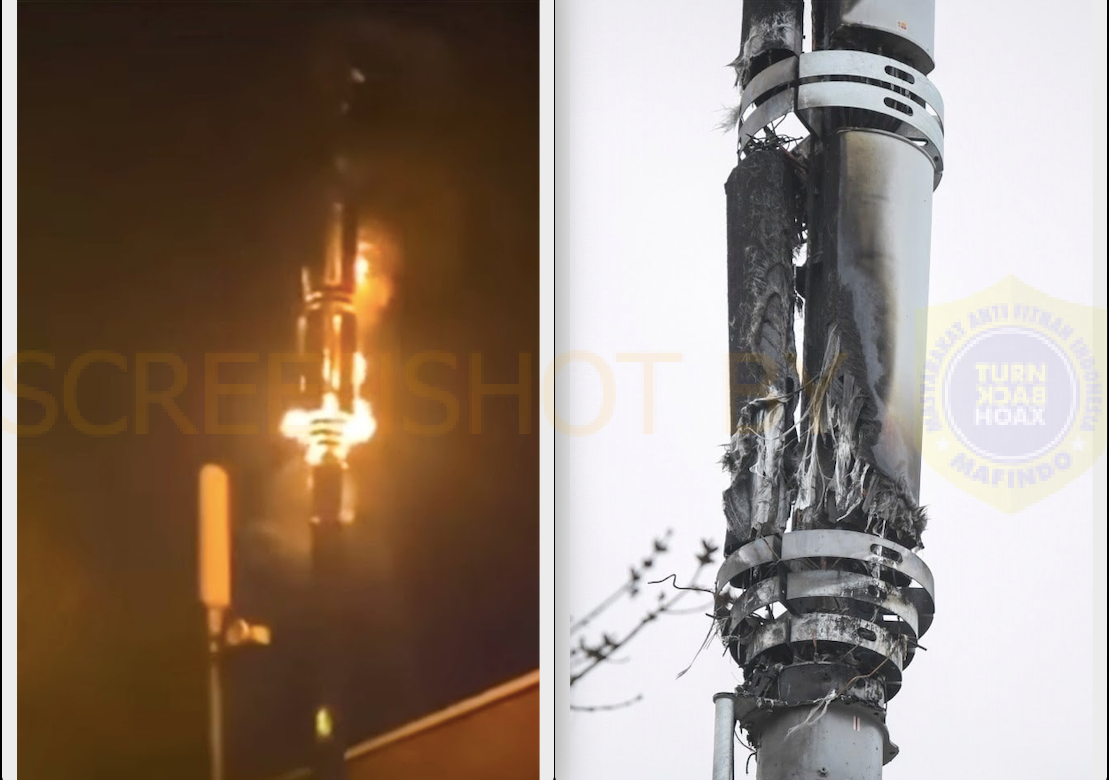 “Hoax seputar virus corona menyebabkan kerusakan pada jaringan telekomunikasi di Inggris. Sejumlah tower 5G di Inggris dibakar karena hoax yang mengatakan bahwa 5G menyebabkan virus corona.”
