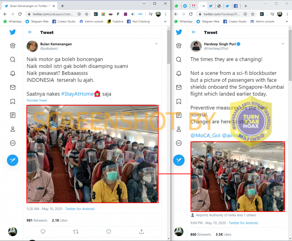 Foto asli diunggah oleh Menteri Penerbangan Sipil India Hardeep Singh Puri di akun Twitter resminya pada 10 Mei 2020.