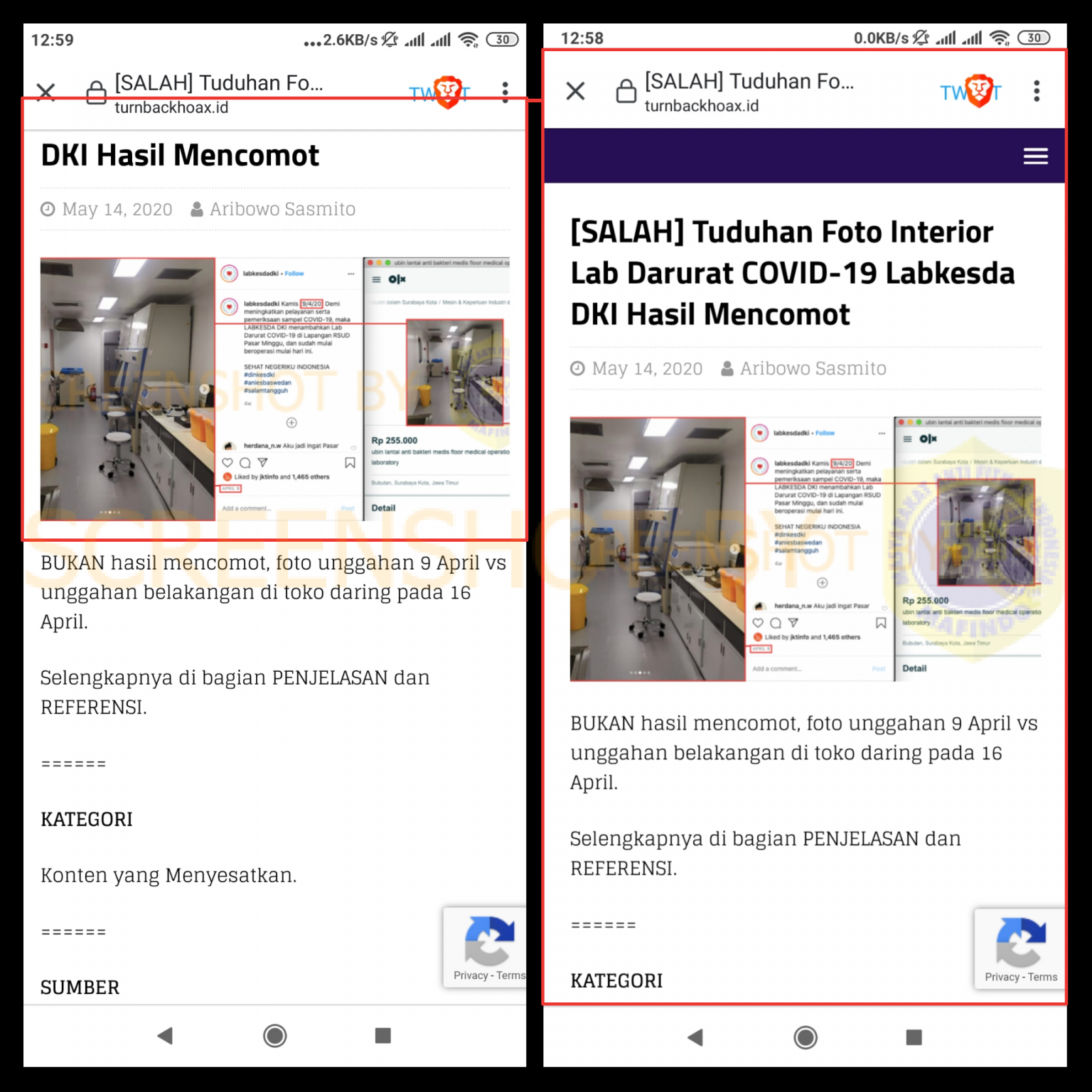 (2) turnbackhoax.id: “[SALAH] Tuduhan Foto Interior Lab Darurat COVID-19 Labkesda DKI Hasil Mencomot”, post periksa fakta yang tangkapan layarnya dipotong.
