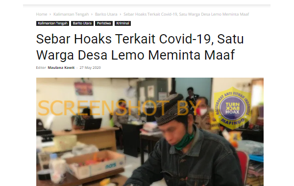 Menanggapi adanya informasi yang meresahkan di masyarakat, kepolisian setempat pun langsung mengambil tindakan. Melansir dari beritasampit.co.id, kepolisian Barito Utara akhirnya mengamankan seorang warga yang diketahui merupakan penyebar dari informasi perihal kaburnya pasien postif Covid-19. Kapolres Barito Utara AKBP Dodo Hendro Kusuma melalui bagian Humasnya menegaskan bahwa informasi tersebut adalah palsu alias hoaks.