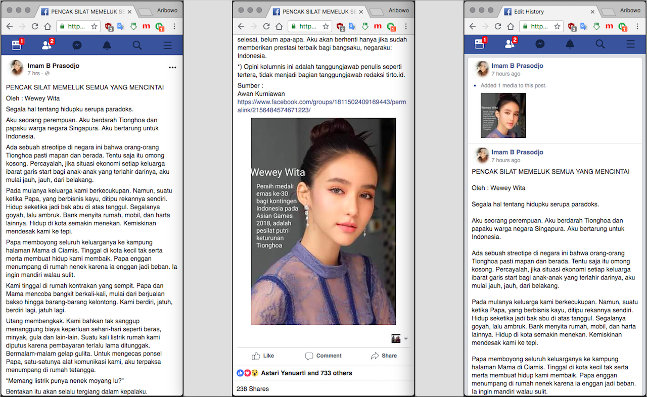 Aku seorang perempuan. Aku berdarah Tionghoa dan papaku warga negara Singapura. Aku bertarung untuk Indonesia…”, selengkapnya di (4) bagian REFERENSI.