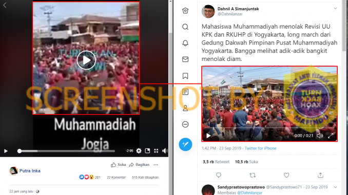 Kami menemukan bagian video itu memperlihatkan aksi unjuk rasa pada September 2019. Kala itu, sejumlah mahasiswa menggelar aksi unjuk rasa terkait penolakan RUU KPK dan RUU KUHP di Yogyakarta.