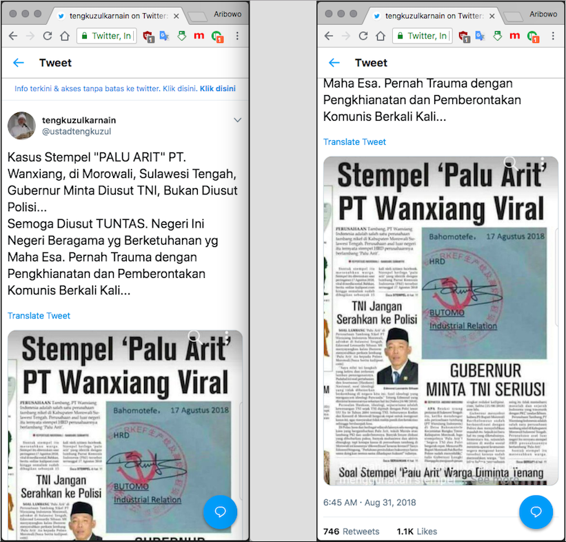 “Kasus Stempel “PALU ARIT” PT. Wanxiang, di Morowali, Sulawesi Tengah, Gubernur Minta Diusut TNI, Bukan Diusut Polisi…