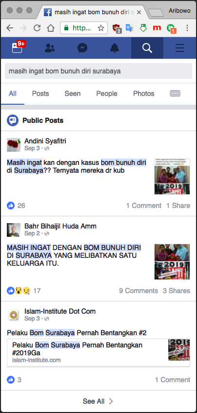 “Masih ingat kan dengan kasus bom bunuh diri di Surabaya?? Ternyata mereka dr kubu ganti ganti ituu.. kok ngeri yah, ayok banyak mikir biar cerdas.. dan pastinya terus waspada’.