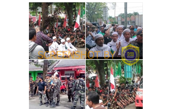 Coba melakukan pencarian fakta terkait dengan keempat foto yang dibagikan oleh akun @BambangIrawan melalui mesin pencari gambar milik google. Padanan gambar serupa ditemukan dan pernah digunakan oleh beberapa media untuk memberitakan sebuah aksi di wilayah Banyumas. Salah satu yang menggunakan foto serupa adalah suara.com pada pemberitaan berjudul “Kantor PDIP Banyumas Digeruduk Massa Banser NU dan FPI” yang terbit pada 26 Juni 2018.