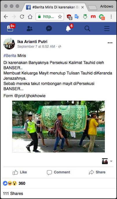 Tribrata News Polda Sulawesi Barat @ 29 November 2017: “Aiptu Ismail Bantu Angkat Keranda Jenazah Warganya”, salah satu situs yang fotonya digunakan oleh post sumber. Konteks berita tidak ada hubungannya dengan narasi yang digunakan oleh post sumber, selengkapnya di bagian PENJELASAN dan REFERENSI.