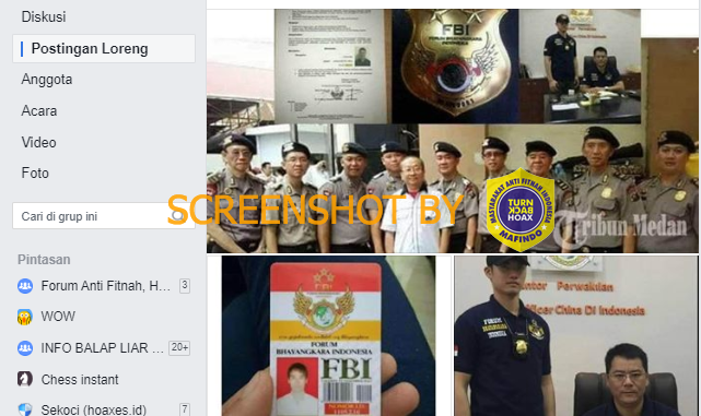 Sementara foto yang memperlihatkan dua pria menggunakan kaos biru berkerah bukanlah seragam Polri. Foto tersebut pernah diklarifikasi oleh Mafindo pada Desember 2016, diketahui bahwa seragam yang digunakan bukanlah seragam Polri melainkan organisasi Forum Bhayangkara Indonesia (FBI). FBI sendiri adalah sebuah organisasi yang sah dan beranggotakan WNA yang secara administrasi sudah legal.