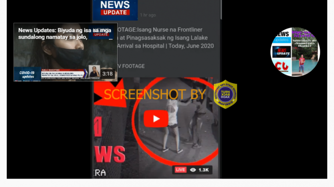 Melalui situs web berbagi video Youtube, beredar sebuah video dengan judul berbahasa tagalog “News Updates: frontliner ginahasa at pinagsasaksak ng isang lalaki dead on arrival sa hospital!” yang apabila diartikan ke bahasa Indonesia berarti “Berita Terbaru: Seorang Perawat garis depan diperkosa dan ditikam oleh seorang pria di jalan yang mati setibanya di rumah sakit!”.