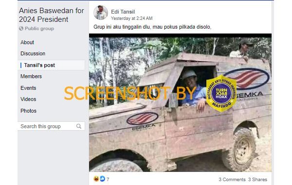 Melalui media sosial Facebook, beredar sebuah foto mobil berbahan dasar kayu dengan tulisan “esemka” pada bodi mobil. Unggahan tersebut dibagikan oleh akun Facebook @EdiTansil dan telah dibagikan sebanyak tiga kali oleh pengguna Facebook lainnya.