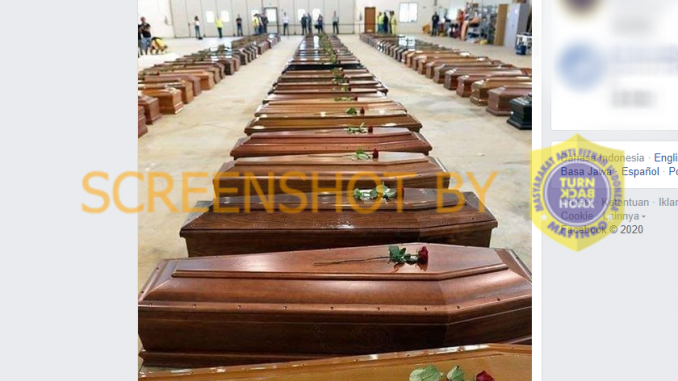 Foto peti mati itu sama sekali tidak terkait dengan COVID-19. Foto itu adalah foto peti mati para migran asal Eritrea dan Somalia yang jadi korban kapal tenggelam terbalik dan tenggelam di lepas pantai Italia Selatan pada 3 Oktober 2013.