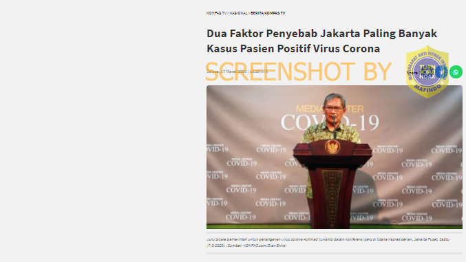 Juru bicara pemerintah khusus penanggulangan COVID-19, Achmad Yurianto menyebut provinsi DKI Jakarta sebagai daerah terbanyak sebaran kasus positif COVID-19. Alasannya menurut Yuri karena mobilitas masyarakat ibu kota tergolong tinggi. Banyak pula pintu masuk dari berbagai daerah menuju Jakarta.