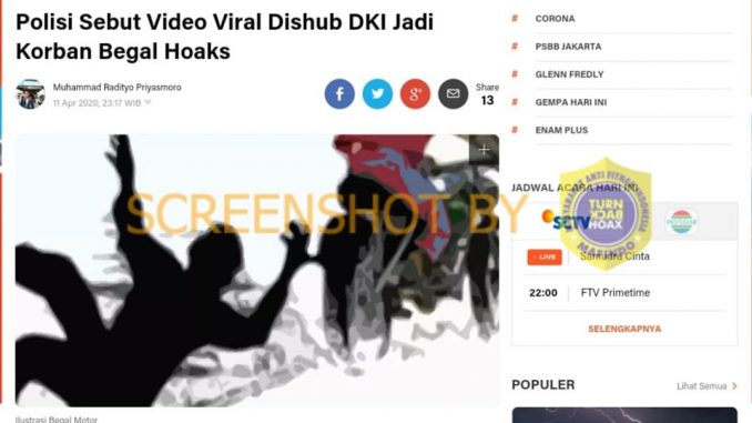 Setelah ditelusuri dengan mesin pencari, pemberitaan dari merdeka.com diterbitkan 12 April 2020 dengan judul “Polisi Pastikan Pengendara Bersimbah Darah karena Dibegal di Jakut Hoaks.”