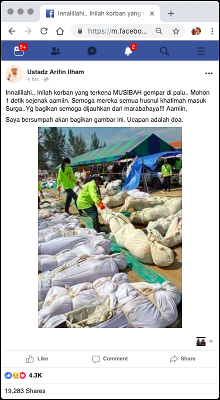 “Innalillahi.. Inilah korban yang terkena MUSIBAH gempar di palu.. Mohon 1 detik sejenak aamiin. Semoga mereka semua husnul khatimah masuk Surga..Yg bagikan semoga dijauhkan dari marabahaya!!! Aamiin.