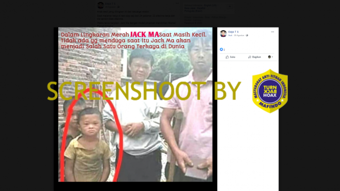 Di salah satu gambar, terdapat narasi “Dalam Lingkaran merah JACK MA Saat Masih Kecil. Tidak ada yg menduga saat itu Jack Ma akan menjadi Salah Satu Orang Terkaya di Dunia”