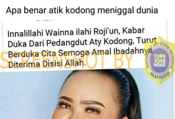 Berdasarkan hasil penelusuran, klaim Aty Kodong dikabarkan meninggal adalah salah. Fakta tersebut disampaikan oleh Aty Kodong melalui akun Instagram resminya pada 11 september 2020. “saya masih sehat kodong:sob::sob::sob:” jelas Aty.