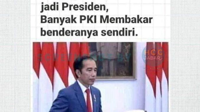 Akun Facebook Ali mengunggah tangkapan layar yang berisi foto Presiden Joko Widodo dengan tulisan “Semenjak Bapak Jokowi jadi Presiden, Banyak PKI Membakar benderanya sendiri.,” pada Kamis (18/6).
