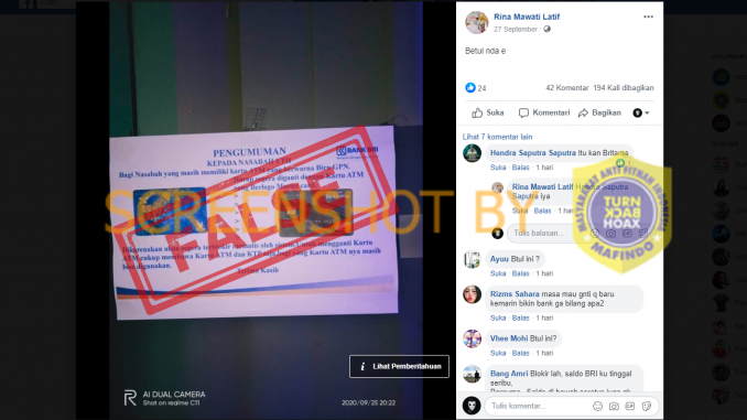 Dilansir dari Tempo, Aestika mengatakan BRI tidak sedang mengeluarkan kebijakan penggantian jenis kartu ATM bagi nasabah. “Hal tersebut tidak benar. Di BRI, tidak ada mekanisme penutupan otomatis seperti yang disampaikan di gambar,” kata Aestika pada 28 September 2020.