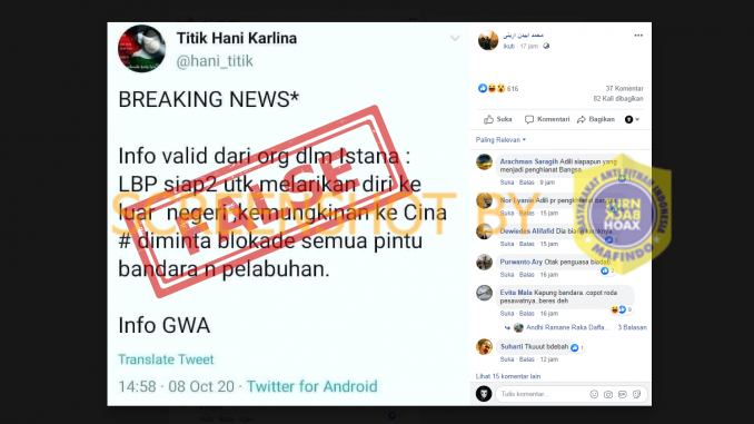 Berdasarkan hasil penelusuran Tim Cek Fakta Medcom, klaim bahwa Luhut Binsar Pandjaitan siap-siap untuk melarikan diri ke luar negeri adalah klaim yang menyesatkan.