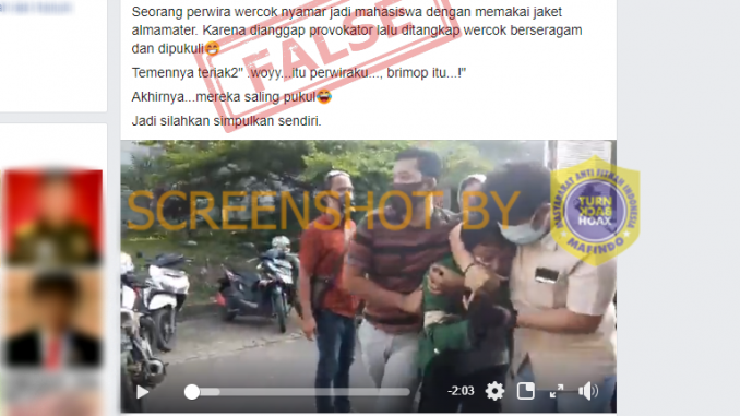 “Seorang perwira wercok nyamar jadi mahasiswa dengan memakai jaket almamater. Karena dianggap provokator lalu ditangkap wercok berseragam dan dipukuli