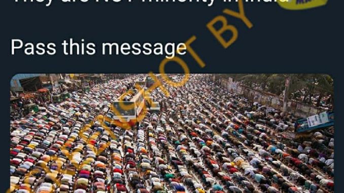 Akun Twitter @TapasNiyama (No Country For Sadhus), yang diunggah pada 19 Oktober 2020, dengan mengunggah foto umat Muslim yang sedang beribadah bersama, menyebarluaskan informasi bahwa foto itu diambil di India dan mengindikasikan bahwa umat Muslim di India mencapai 30% total populasi di India. Unggahan tersebut telah dibagikan ulang sebanyak 287 kali. Selain itu, terdapat 458 orang menyukai, diikuti dengan 18 orang yang memberikan komentar.