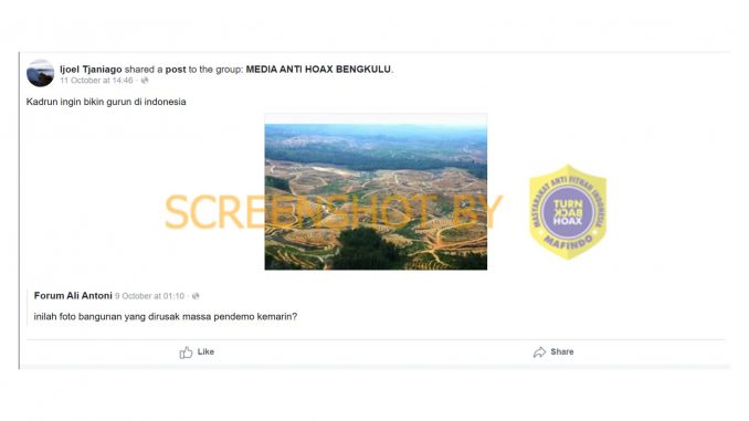 Akun Facebook Ijoel Tjaniago membagikan ulang sebuah foto dari Forum Aliantoni dalam sebuah grup Facebook bernama media anti hoax Bengkulu yang diikuti dengan narasi bahwa “Kadrun ingin bikin gurun di Indonesia”, postingan tersebut diunggah pada Minggu (11/10/20).