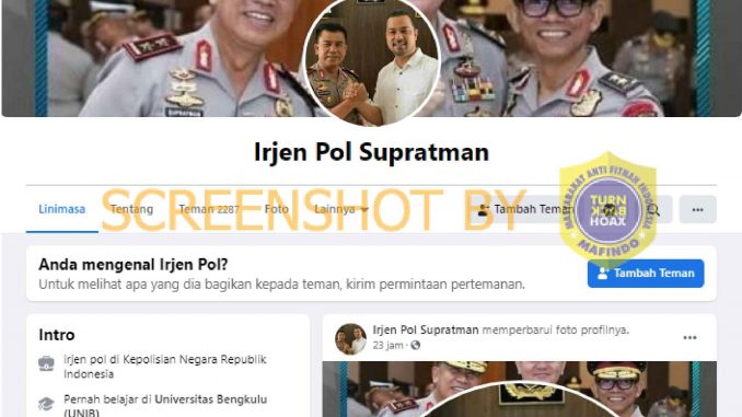 Akun Facebook atas nama Irjen Pol Supratman