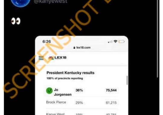 Selebriti Kanye West, melalui akun Twitter pribadinya, @kanyewest, mengunggah sebuah foto (13/10) yang menunjukkan hasil pemilihan presiden untuk wilayah Negara Bagian Kentucky, di mana Kanye West berada di urutan ketiga dengan perolehan suara 19%, mengalahkan kandidat Partai Demokrat Joe Biden yang hanya mendapat suara 14% dan kandidat Partai Republik Donald Trump yang memperoleh suara 2%. Cuitan Kanye West tersebut kemudian disebarkan ulang oleh pengguna Facebook Kyle Zucco di hari yang sama.
