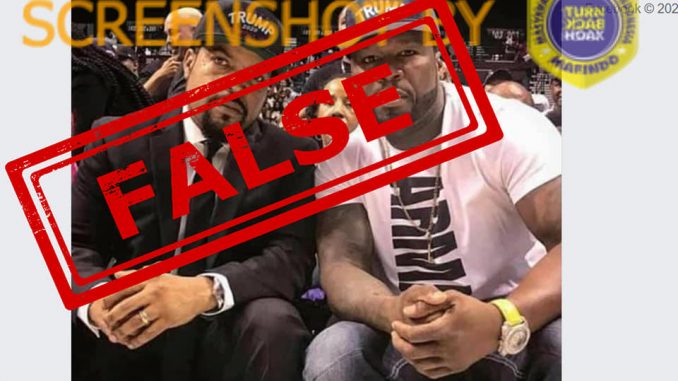 Akun FB Jake Haman, yang diunggah pada 20 Oktober 2020, dengan mengunggah foto 50 Cent dan Ice Cube dalam acara bersama dan mengenakan topi bertuliskan “Trump 2020”, menyebarluaskan informasi bahwa kedua rapper tersebut telah bergabung untuk mendukung Trump menjadi presiden Amerika Serikat selanjutnya. Unggahan tersebut telah dibagikan ulang sebanyak 1,500 kali. Selain itu, terdapat 481 orang menyukai, diikuti dengan 49 orang yang memberikan komentar.