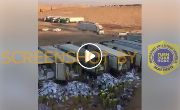 Narasi yang salah. Faktanya, video tersebut merupakan video operasi resmi di bawah pengawasan Sekretariat al-Qassim, Arab Saudi untuk membuang sekitar 80.000 bungkus ayam kedaluwarsa yang tidak layak konsumsi tahun 2016.