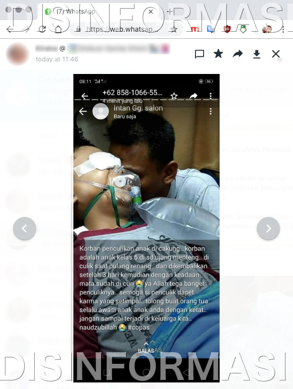 “Korban penculikan anak di cakung.. korban adalah anak kelas 5 di sd ujung menteng.. di culik saat pulang renang.. dan dikembalikan setelah 3 hari kemudian dengan keadaan mata sudah di curi