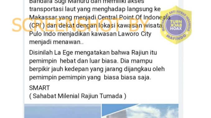 Berdasarkan seluruh referensi yang ada klaim foto desain dan konsep penataan Laworo City termasuk hoaks dengan kategori konten salah.
