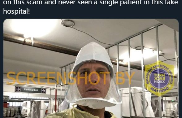 Akun Twitter @NetworkinVegas.com mengunggah sebuah foto yang menunjukkan seorang dokter berdiri di depan ranjang rumah sakit yang kosong di Reno, Nevada, dengan klaim yang membuktikan bahwa pandemi virus Corona adalah tipuan pada Senin (30/10/2020).