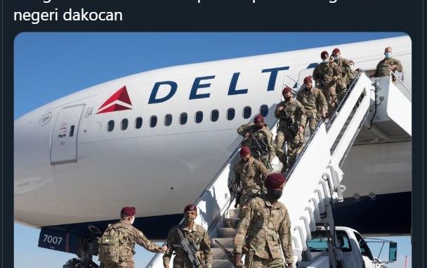 Beredar postingan dari akun Twitter Garuda Hitam (@SilumanRi) berupa sebuah foto dengan keterangan bahwa foto tersebut berada di pangkalan Darwin dan tentara pada foto tersebut diklaim menggunakan seragam dari negeri Dakocan. Postingan ini diposting pada 3 Desember 2020 dan disukai sebanyak 643 kali dan 184 retweets.