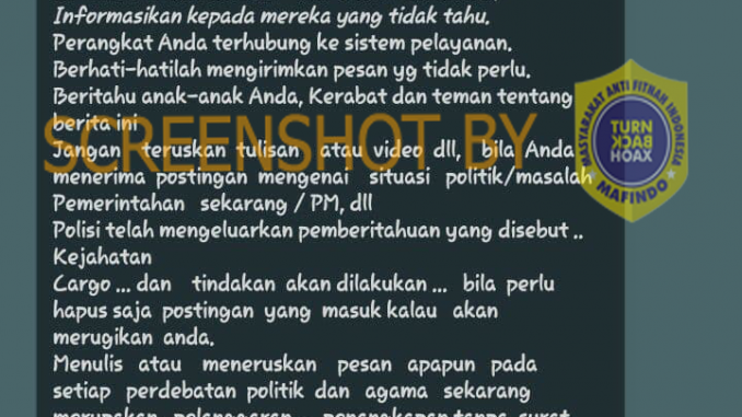 Jangan teruskan tulisan atau video dll, bila Anda menerima postingan mengenai situasi politik/masalah Pemerintahan sekarang / PM, dll