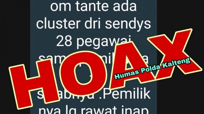 Beredar informasi di media sosial Whatsapp yang berisi pesan agar masyarakat tidak berkunjung ke Supermarket Sendys, Palangka Raya, Kalimantan Tengah karena terdapat klaster Sendys. Disebutkan 28 pegawainya melakukan swab test dan pemiliknya tengah menjalani rawat inap di RS Awal Bros Betang Pambelum.
