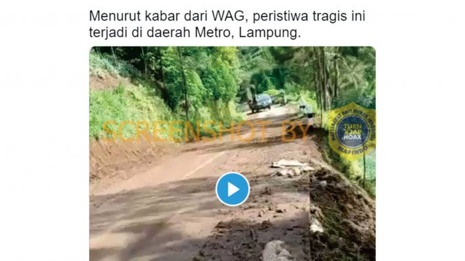 Telah beredar sebuah unggahan video oleh akun Twitter @Dark_Anger1 yang memperlihatkan video kecelakaan mobil yang bertuliskan “Hati-hati dalam berkendaraan di musim hujan yang licin! Menurut kabar dari WAG, peristiwa tragis ini terjadi di daerah Metro, Lampung”, diunggah pada Selasa (24/11/20).