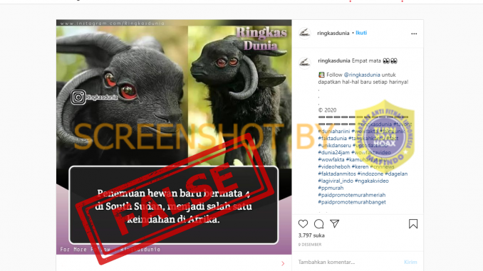 Berdasarkan hasil penelusuran Tim Periksa Fakta AFP, klaim adanya foto penemuan hewan baru bermata empat di South Sudan, Afrika adalah klaim yang salah.