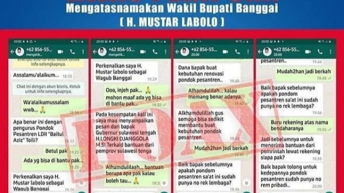 Telah beredar sebuah percakapan melalui whatsapp yang mengatasnamakan Wakil Bupati Banggai Mustar Labolo.