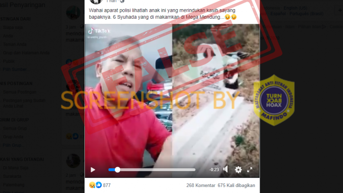 Berdasarkan hasil penelusuran, klaim adanya video anak salah satu laskar FPI sedang memanggil ayahnya yang dimakamkan di Megamendung adalah klaim yang salah.