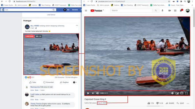 Dilansir dari Medcom, video yang identik diunggah pada kanal Youtube mike ott dengan judul “Capsized Ocean King II” pada 5 Agustus 2009.