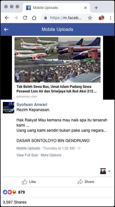 Daur ulang disinformasi lama, post sumber membagikan gambar hasil suntingan yang dimuat oleh situs “Pekanews” di 2016. Selengkapnya di bagian PENJELASAN dan REFERENSI.