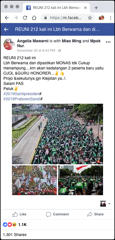 Post sumber menggunakan foto-foto yang sudah beredar sebelumnya, dokumentasi kegiatan-kegiatan yang tidak berhubungan dengan Reuni 212. Selengkapnya di bagian PENJELASAN dan REFERENSI.