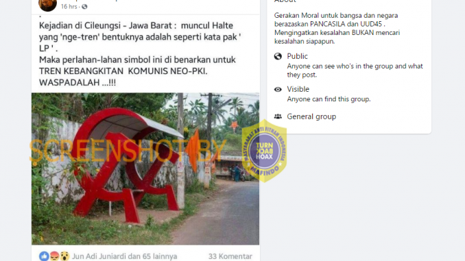 Setelah ditelusuri, gambar tersebut merupakan hoaks lama yang beredar kembali, gambar serupa juga pernah diklaim berlokasi di Sukoharjo. Faktanya, gambar halte yang menyerupai logo palu arit ini berlokasi di Kollam, Kerala, India bukan di Cileungsi, Jawa Barat. Gambar serupa juga pernah diunggah di situs alamy.com dengan judul “Hammer and Sickle Bus Stop, Kollam – Image ID: FR2GF5” oleh François-Olivier Dommergues yang diabadikan pada Desember 2015 di Kelara, India.