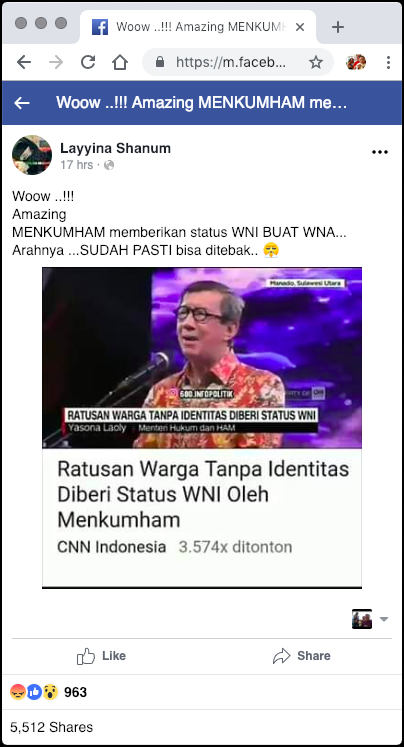 Post sumber membagikan dengan menambahkan narasi pelintiran untuk membangun premis sehingga merubah konteks berita yang sebenarnya, sasarannya adalah mereka yang hanya membaca judul tanpa memahami isi lengkap berita. Selengkapnya di bagian PENJELASAN.